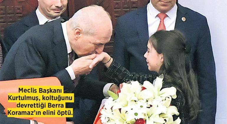 Konuşmasının akabinde “TBMM çocuk özel oturumu”nu başlatan Kurtulmuş, koltuğunu oylama sonucunda Keçiören Şinasi İlkokulu 4’ncü Sınıf Öğrencisi Berra Koramaz’a devretti. 6. sınıf öğrencisi Abdullah Talha Demir ve 4. sınıf öğrencisi Hikaye Çıtak ise katip üyelik yaptı. Koramaz, konuşmasında “Erdem, paha ve hareket çerçevesinde şekillenen Maarif Modeli, ulusal şuurla sahip olduğumuz pahaları ders kitaplarımıza da yerleştirerek geleceğin teminatı biz çocuklara yol göstermektedir” dedi. “Geleceğin teminatı biz çocuklar bilmekteyiz ki aileye sahip çıkmak, vatana sahip çıkmaktır” diyen Koramaz, Aile Yılı kapsamında yapılacak çalışmaların takipçisi olacaklarını aktardı.
