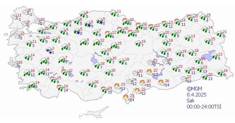 8 Nisan 2025 Salı günü bölgenin doğusunda İstanbul, Kocaeli, Sakarya ve Yalova’da yağmur ve karla karışık yağmur bekleniyor.
