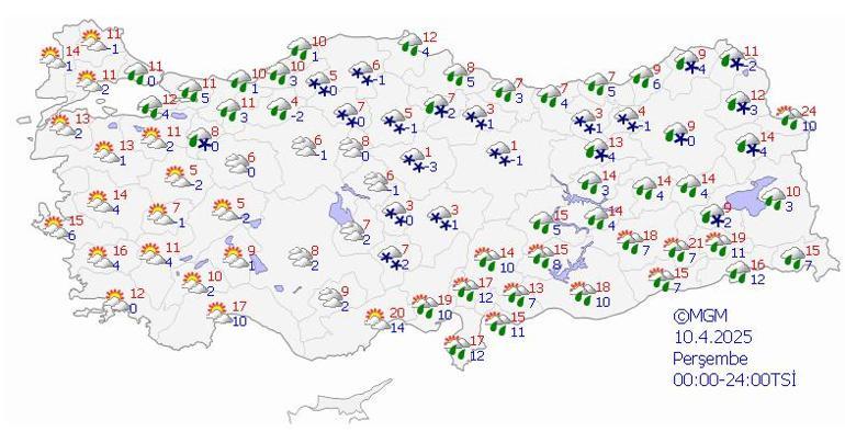 Meteoroloji Genel Müdürlüğü tarafından yapılan kestirimlere nazaran: Ülkemiz genelinin modüllü ve çok bulutlu, Marmara, Ege, Akdeniz, İç Anadolu ve Karadeniz ile Güneydoğu Anadolu’nun kuzey ve batısının aralıklı yağışlı geçeceği iddia ediliyor. Çoklukla sağanak ve gök gürültü sağanak, Doğu Karadeniz’in iç kesitleri ile Doğu Anadolu’nun kuzeydoğusunun yüksek bölümlerinde karla karışık yağmur ve kar halinde görülmesi beklenen yağışların Trakya, Çanakkale etrafları, Antalya’nın doğusu ve Orta Toroslar mevkiinde mahallî kuvvetli olacağı varsayım ediliyor. Sabah ve gece saatlerinde Marmara ile kuzey ve iç kısımlarda pus ve yer yer sis bekleniyor.