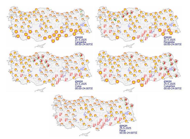 Raporda; kimi vilayetlerde sıcaklıkların 39-40 dereceye kadar ulaşacağı tabir edildi. Aydın, İzmir ve Denizli’de sıcaklıkların 35 dereceye kadar ulaşması bekleniyor. Yeniden Aydın’da pazar günü termometrelerin 40 dereceyi göstereceği varsayım ediliyor. Adana, Kahramanmaraş ve Kilis’te ise sıcaklıkların 35-39 derece ortasında seyretmesi bekleniyor.