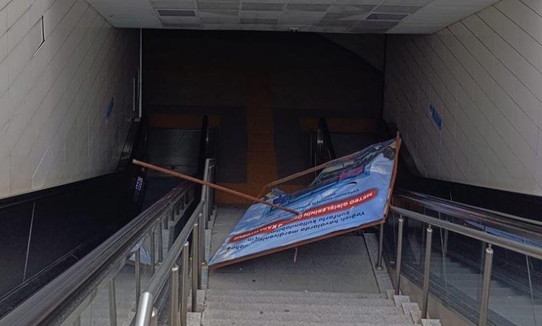 Metro istasyonunda üzerine reklam panosu düşen bayan yaralandı