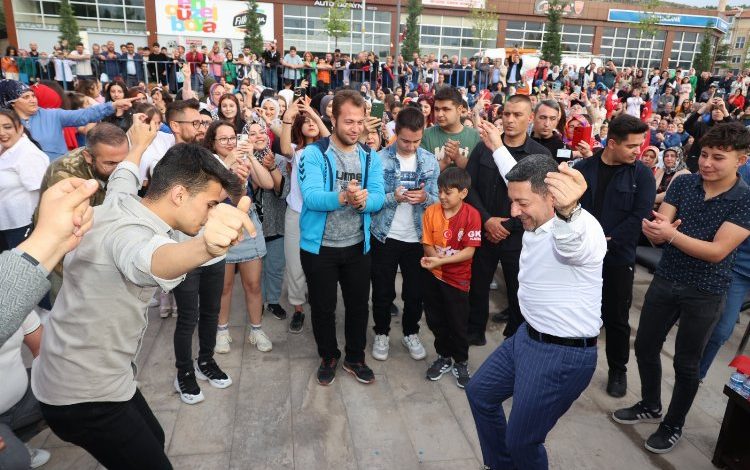 Belediye Başkanı Arı, Taş’ın seslendirdiği oyun havalarına gençlerle birlikte eşlik ederek sahnede oynadı.