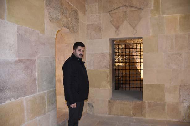 Divriği Ulu Camii müezzini ve yapıtın mihmandarı Nail Ayan, kalp biçimindeki terazinin derin bir mana taşıdığını belirterek, “Kabir odası, cami ile darüşşifanın üretimiyle bırakılmış bir kabir odasıdır. Camiyi yaptıran Ahmet Şah baş mimara diyor ki ‘Şifahanenin içerisine bir oda bırakın, bu oda kabir odası olsun’ diyor. ‘Ahirete gittiğimiz vakit, sırası gelen buraya defnedilsin’ denmiş. O denli de olmuştur. İçeride 15 tane kabir bulunmaktadır. Bunlardan 4 adedini bilmekteyiz. Camiyi yaptıran Ahmet Şah, babası Süleyman Şah, annesi Fatıma Hatun ve Ahmet Şah’ın eşi Turan Melek Hanım ve başka aile fertlerinin kabirleri burada bulunmaktadır” dedi.