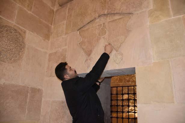 Kabir odası giriş kapısının üzerine sade ancak çok şey anlatan bir simge yapıldığını anlatan Ayan, “Burayı kabir odası olarak bırakan Baş Mimar Muğis oğlu Ahlatlı Hürrem Şah, kapı üzerine çok kolaymış üzere gözüken lakin maneviyat yüklü bir motif yapmıştır. Bu motifi iki formda ele alıyoruz. Üst tarafı tabutun üst kapağıdır. Bunun tamını bir terazi olarak görünür. Terazinin kefelerinde kalpler tartılmaktadır. Terazilerin orta istikrar çubuğunda da bir kalp vardır ve o da karşıt oturtulmuştur, üst bakmaktadır. Buradaki tasavvufi bildiri şudur. İçeride yatan merhum ve merhumelerin lisanı ile ‘Biz bu dünyadan göçüp ve gittik. Sizler de göçüp gideceksiniz. Lakin bu dünyada yaptıklarımızın karşılığını görebileceğimiz bir yer var. Bu yer ahiret alemi, oraya götüreceğimiz şeyler dünyadaki paramız, malımız, mülkümüz değil, kalplerimiz ve kalplerimizin içerisindekilerdir’ manası budur. ‘İnsan dünyadayken neler yapar? Güzellik, kötülük, yanlışsız yanlış, sevap günah üzere hallerde teraziyi bir hal üzerine tutun, kalbiniz her daim Allah’a yönelik olsun. O vakit ölmekten korkmayın, girin kabre’ iletisi verilmiştir” diye konuştu.