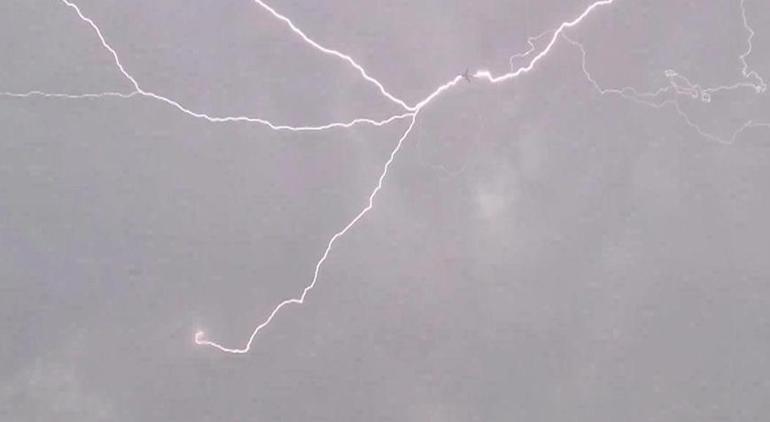 Pegasus uçağına yıldırım isabet etti