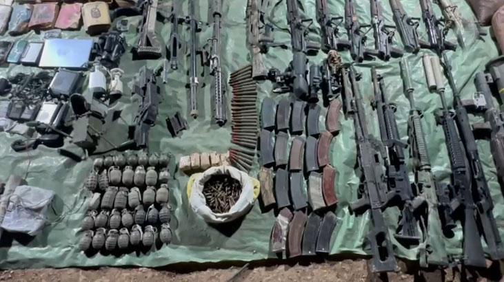 “7 adet AK-47 seyyar dipçik piyade tüfeği ve 19 şarjörü, 1 adet AK-47 sabit dipçik piyade tüfeği, 1 AT-4 tanksavar silahı, 1 RPG-7 roketatar, 1 Dragunov keskin nişancı tüfeği, 3 adet M-16 piyade tüfeği, 1 PKMS makineli tüfek ve yedek namlusu, 29 adet 12,7 milimetre Doçka mühimmat, 682 adet 5,56 milimetre mühimmat, 34 el bombası, 1 keskin nişancı dürbünü, 2 termal silah dürbünü, 1 periskop, 1 RPG-7 gündüz görüş dürbünü, 2 sabit telsiz, 3 el telsizi, 2 dizüstü bilgisayar, 2 Kindle, 4 telefon, 3 kamera, go-pro kamera, Doçka silahına ilişkin kesimler, 5 fünye, el jeneratörü ve terör örgütüne ilişkin dokümanlar.”