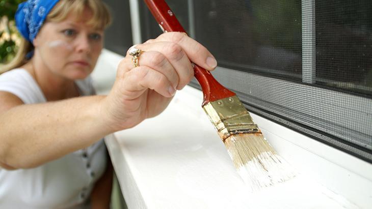 Pencere pervazlarınızı yenilemek için gereksiniminiz olan materyalleri listeleyelim. Küçük, açılı boya fırçası, macun bıçağı, sünger, zımpara kağıdı, boya, astar, boya tepsisi.