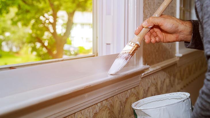 Pencere pervazlarınızı yenilemek için gereksiniminiz olan materyalleri listeleyelim. Küçük, açılı boya fırçası, macun bıçağı, sünger, zımpara kağıdı, boya, astar, boya tepsisi.