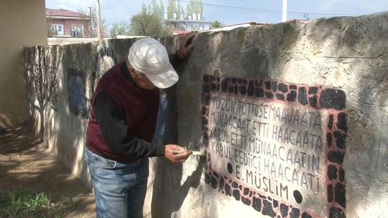 54 yıl evli kaldıklarını söyleyen Topraktepe; “İyi berbat günlerimiz geçti. Kendisine vefalı davranmak için bu türlü bir şeyler yaptım. Eşimin anısına taşlara Zeki Müren’den, Aşık Veysel’den, Karacaoğlan’dan, Pir Sultan Abdal’dan, Mahsuni Şerif’ten dizeler yazdım” dedi.
