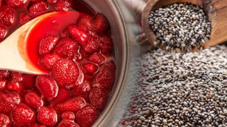 Çilekler yumuşayınca ezerek püre haline getirmelisiniz. Hazırlanan bu karışım hala sıcakken içine chia tohumlarını ekleyin ve yeterlice karıştırın.