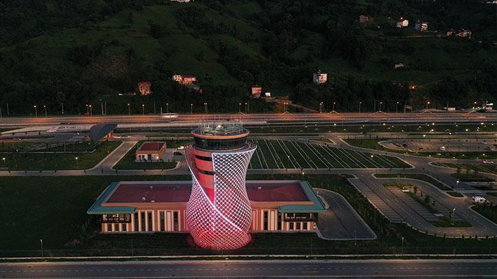 Rize Pazar’da, 100 milyon ton deniz dolgusu üzerine inşa edilen havalimanının 3 bin metre uzunluğunda ve 45 metre genişliğinde piste ve 7 uçak kapasiteli aprona sahip olduğunu vurgulayan Uraloğlu, “Havalimanımız, çay bardağı temalı Hava Trafik Denetim Kulesi, terminal binasındaki Çay Müzesi ve Karadeniz mimarisiyle yalnızca bir ulaşım noktası değil, tıpkı vakitte bölgenin sembol yapılarından biridir.” dedi.