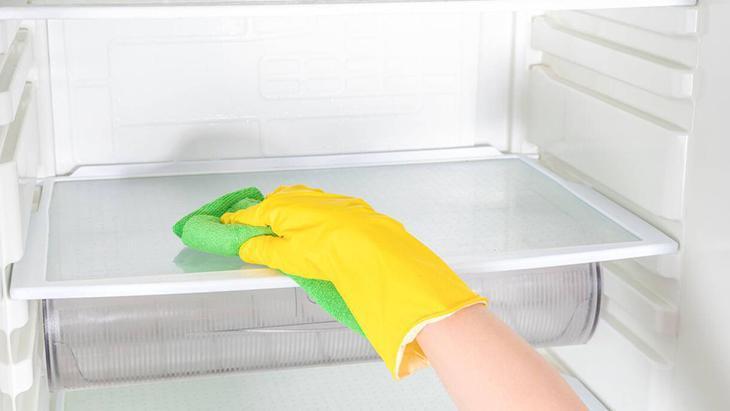 İç kısmı çok yüzeyli bir spreyle ıslatın. Buzdolabının yanlarını ve akabinde her rafı silin. Pak bir diş fırçası ve bir ölçü temizleyici kullanarak saklı kalmış kirleri temizleyin.
