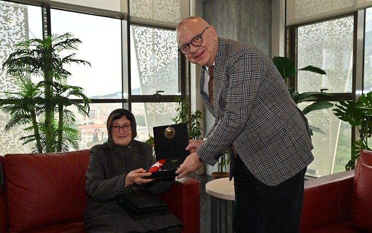 Manisa Büyükşehir Belediyesinin şehitlerimizin anısını yaşatmak amacıyla başlattığı şehit mevlidi ve hayır etkinliğinden dolayı Başkan Ergün’e teşekkür eden şehit annesi Nevin Divrik, “Evlatlarımızın anısını yaşatıyor olmanız bizleri hem gururlandırdı hem de duygulandırdı” dedi. Tüm şehitlerimizi rahmetle anan, ailelerine de sağlıklı ve uzun ömürler dileyen Başkan Ergün, şehidimizin annesi Nevin Divrik’e Yasin-i Şerif ve Türk bayrağı takdim etti.