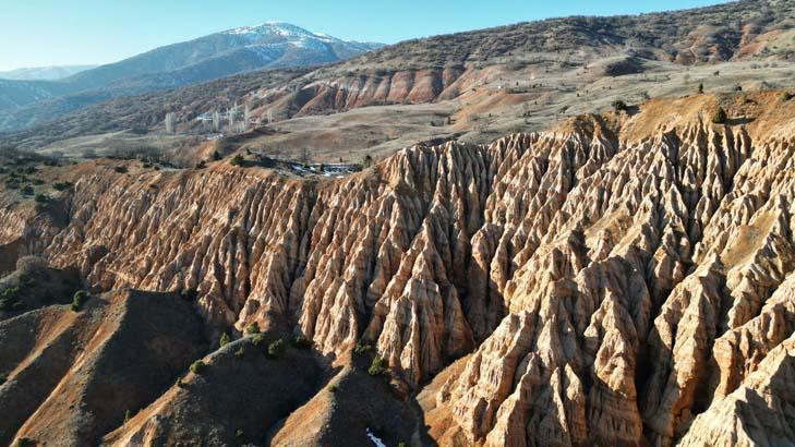 Sivas Cumhuriyet Üniversitesi (SCÜ) Eğitim Fakültesi Coğrafya Eğitimi Anabilim Kısmı Öğretim Üyesi Dr. Fatih Kartal, Divriği ilçesinin farklı coğrafik yapısı olduğunu belirterek, “İç Anadolu Bölgesi, her ne kadar düzlükleriyle isimlendirilse da Sivas ilimiz ortalama yükseltisi İç Anadolu Bölgesi’nden fazla olan bir vilayetimizdir. Divriği ilçesi ise külliyen Doğu Anadolu Bölgesi’nin hissedildiği çetin ve yüksek bir coğrafyaya sahip bir ilçemizdir. Buradaki birçok oluşumlar kendi içerisinde vadi sistemlerini de meydana getirmiş. Şeytan Kenti Kayalıkları da Divriği’de önemsenen ve önemli boyutta doğal hoşluğu olan, turizm cazipliği çok yüksek olan yerlerden bir adedidir. Bunun oluşumunu incelediğimiz vakit, yatay yapının faylanma sonucunda sıkıştırılmasıyla, yağışla ve akarsularla birlikte kısmi olarak bir kırgıbayır sistemi oluşturduğunu görüyoruz. Divriği’de de önemli bir kırgıbayır sıklığı var. Bu kırgıbayır formunun oluşumu da büsbütün halk tarafından Şeytan Kenti Kayalıkları profiline dönüştürülmüş. Burada büsbütün kayaçların aşındırma profilleri ortaya çıkmıştır. Bu çeşit alanların oluşumu bilhassa ‘Şeytan Kenti Kayalıkları’nın oluşumunun miyosen periyoduna ilişkin olduğunu görüyoruz. Bu devirdeki oluşumlar kendisini hala önemli boyutta yenileyebiliyor” dedi.
