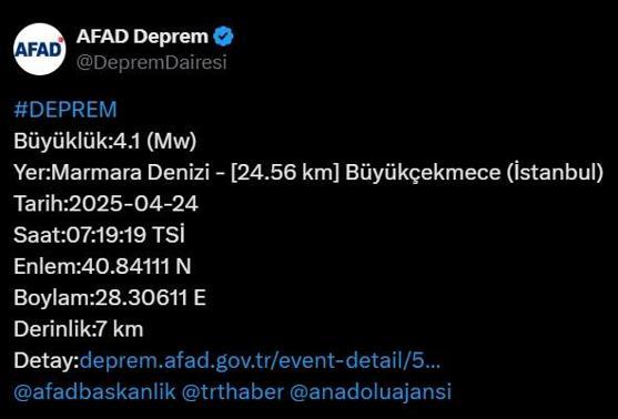 Son dakika… İstanbul’da 4.1 büyüklüğünde bir zelzele daha
