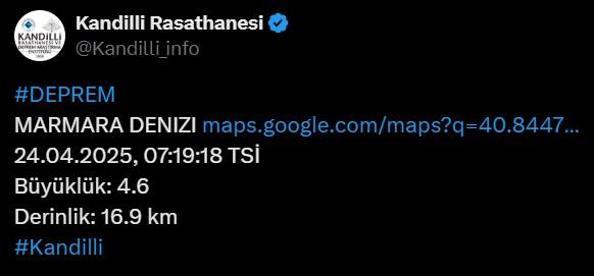 Kandilli Rasathanesi ise sarsıntının büyüklüğünü 4.6 olarak bildirdi.