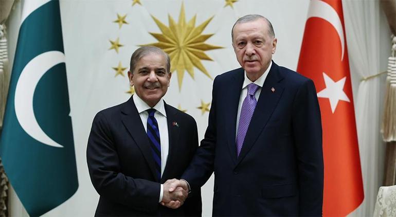 Cumhurbaşkanı Recep Tayyip Erdoğan Pakistan Başbakanı Şahbaz Şerif ile ortak basın toplantısında açıklamalarda bulunuyor. Erdoğan’ın açıklamaları özetle şöyle: Pakistan’ı son olarak Yüksek Seviyeli Stratejik İşbirliği Kurulumuzun 7. Toplantısı vesilesiyle Şubat ayında ziyaret etmiştim. Bu vesileyle Sayın Başbakan’a ve Pakistan makamlarına sıcak misafirperverlikleri için bir sefer daha teşekkür ediyorum. Bu karşılıklı temaslar ülkelerimiz ortasındaki ilgilerin ulaştığı müstesna seviyesi ortaya koyuyor. Aziz kardeşimle bugün yaptığımız görüşmede ikili münasebetlerimizin yanı sıra bölgesel ve global sıkıntılar hakkında görüş alışverişinde bulunduk.