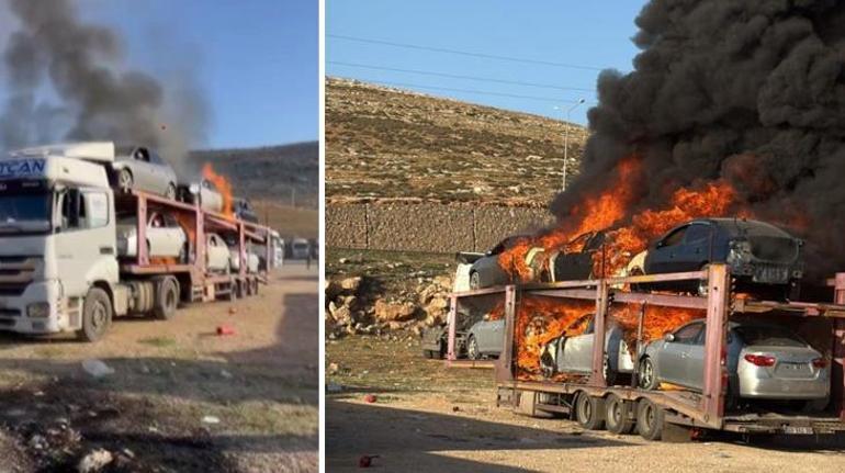 Hatay’da bulunan Cilvegözü Hudut Kapısı’ndan Suriye’ye geçmeyi bekleyen tırda yüklü araçlar alevlere teslim oldu. Yangında 6 araç yanarak kullanılamaz hale geldi.
