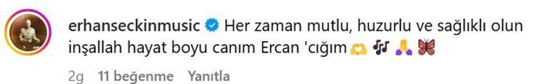 Baylan’ın romantik paylaşımına Survivor Pınar Saka’nın eşi Erhan Seçkin ”Her vakit keyifli, huzurlu ve sağlıklı olun inşallah. Hayat uzunluğu canım Ercan’cığım” yorumunu yaptı.