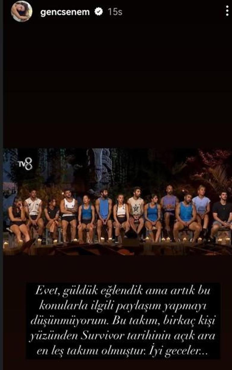 ”Evet, güldük eğlendik lakin artık bu hususlarla ilgili paylaşım yapmayı düşünmüyorum. Bu kadro, birkaç kişi yüzünden Survivor tarihinin açık orta en leş kadrosu olmuştur. Uygun geceler”