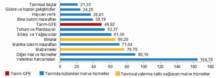 Ana gruplarda bir önceki aya göre, tarımda kullanılan mal ve hizmetler endeksinde yüzde 3,63 artış, tarımsal yatırıma katkı sağlayan mal ve hizmetler endeksinde yüzde 3,34 artış gerçekleşti. Bir önceki yılın aynı ayına göre göre tarımda kullanılan mal ve hizmetler endeksinde yüzde 46,51 artış, tarımsal yatırıma katkı sağlayan mal ve hizmetler endeksinde yüzde 75,27 artış gerçekleşti.