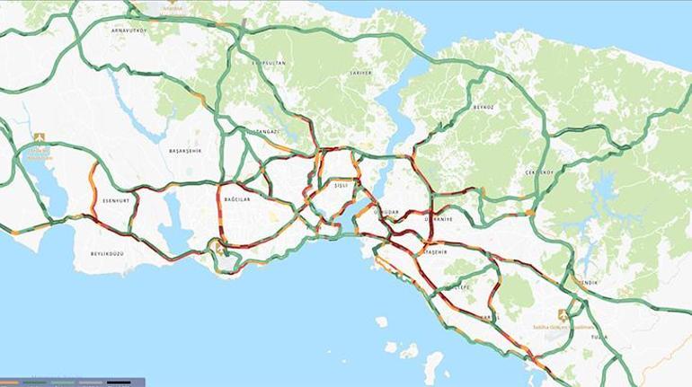 İBB’nin CepTrafik uygulaması datalarına nazaran, kent genelinde yüzde 78’e kadar çıkan trafik yoğunluğu, Avrupa Yakası’nda yüzde 72, Anadolu Yakası’nda ise yüzde 87 olarak ölçüldü.