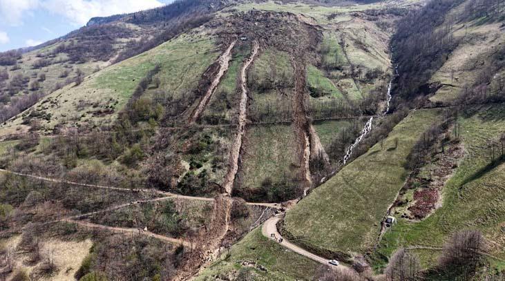 Sisin dağılmasının akabinde AFAD takımları, yaklaşık 100 dönümlük alanın etkilendiği bölgede incelemelerde bulundu. Heyelanın boyutu dron kamerasıyla görüntülendi. Manzaralarda; derin yarıkların oluştuğu alanda tonlarca toprağın aşağıya kaydığı görüldü. Takımların saha incelemelerinde heyelan riskinin sürdüğü tespit edilip, güvenlik şeridi çekilen yol bir müddetliğine ulaşıma kapatıldı.