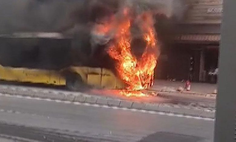 Ümraniye’de büyük panik! İçinde yolcuların bulunduğu İETT alev alev yandı