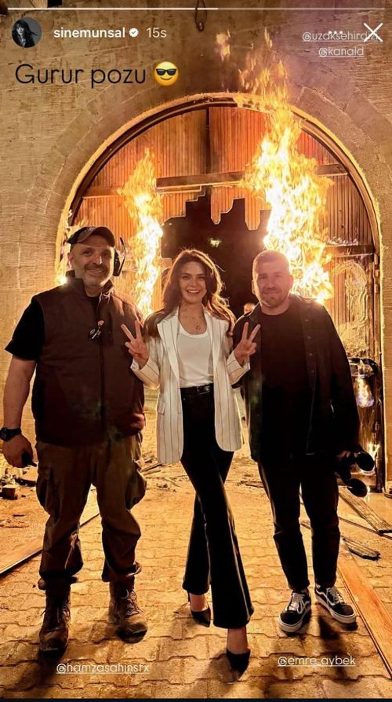 Instagram hesabından paylaşım yapan Sinem Ünsal, dün geceye damga vuran konak yakma sahnesiyle ilgili paylaşım yaptı. Set takımından çalışma arkadaşlarıyla poz veren Ünsal, ‘Gurur pozu’ yazdı.