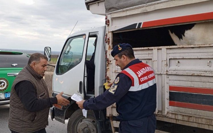 Edirne İl Jandarma Komutanlığı bünyesindeki Çevre Doğa ve Hayvanları Koruma Timi tarafından yapılan kontrolde, canlı hayvan taşımacılığı yapan kişilere uymaları gereken kurallar ve bulundurmaları gereken belgeler hakkında bilgilendirme yapıldı.
