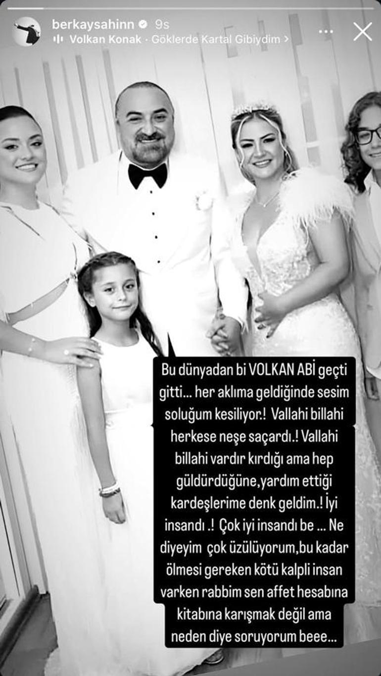 Volkan Konak’ın ailesiyle olan fotoğrafını Instagram hesabından paylaşan Berkay Şahin, “Bu dünyadan bir Volkan ağabey geçti gitti… Her aklıma geldiğinde sesim soluğum kesiliyor! Vallahi billahi herkese neş saçardı. Vallahi billahi vardır kırdığı fakat daima güldürdüğüne, yardım ettiği kardeşlerime denk geldim. Uygun insandı! Çok düzgün insandı be… Ne diyeyim çok üzülüyorum, bu kadar ölmesi gereken makûs kalpli insan varken Rabbim sen affet hesabına kitabına karışmak değil lakin neden diye soruyorum…” tabirlerini kullandı.