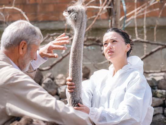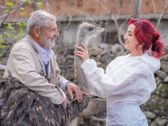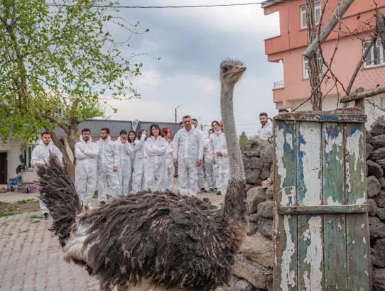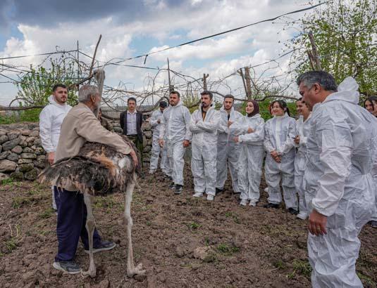 “Hocalarımız buraya geleceğimizi söyleyince de heyecanlandık. Birinci kere gördük, dokunduk, muayene ettik. Bizim için farklı bir tecrübe oldu. Mizaç olarak sert bir hayvan olduğu için bu çeşit bir bağın kurulması çok özel. Deve kuşuyla hoş kareler de yakaladık.”