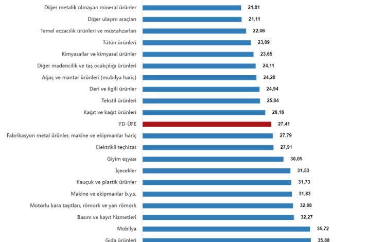 YD-ÜFE İMALAT ÜRÜNLERİNDE YILLIK YÜZDE 27,30 ARTTI