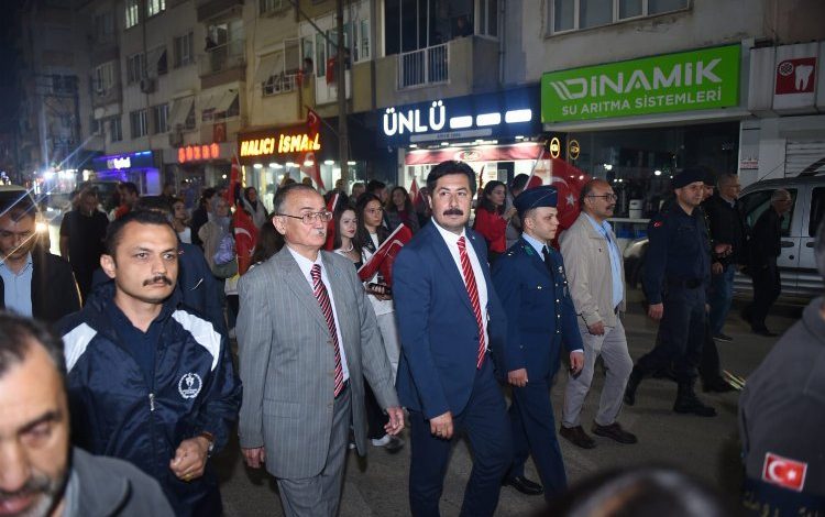 Yenişehir’de kutlamalar gün boyu devam ederken gece saatlerinde ise coşku arttı. Fincan Kafe’nin önünden Millet Bahçesi’ne kadar bando eşliğinde kortejle yürüyüş gerçekleştirildi. Yürüyüşe, ilçe protokolünün yanı sıra binlerce Yenişehirli de katıldı. Millet Bahçesi’nde kurulan sahnede ilk olarak Yenişehir Belediyesi Halk Oyunları ekibi sahne aldı. Gecede coşku Mavi Düş Grubu’nun konseriyle tavan yaptı.