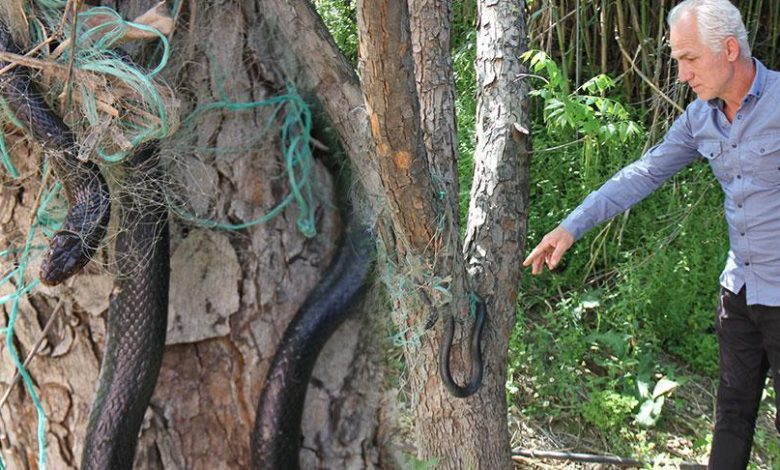 Yer: Antalya! Ağaca metrelerce uzunlukta yılan dolandı
