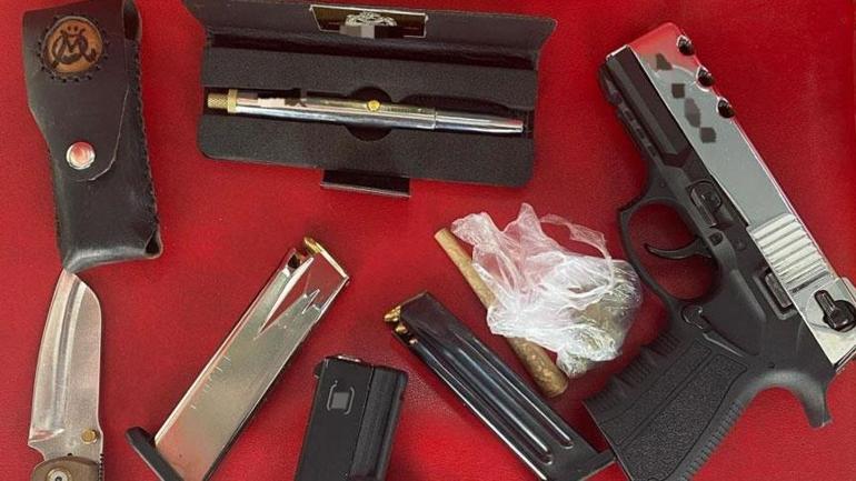 Araç içerisinde yapılan aramada 1 adet kalem tabanca, 2 adet ruhsatsız tabanca ile bir ölçü esrar ele geçirildi. Araçta bulunan şüpheliler M.N. ve S.Ö. gözaltına alındı.