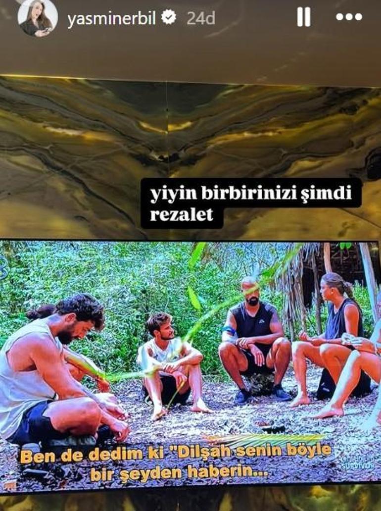 Survivor Yiğit Poyraz’ın sevgilisi Yasmin Erbil, sevgilisinin yarıştan elenmesinden akabinde çabucak Instagram hesabından reaksiyonunu gösterdi.
