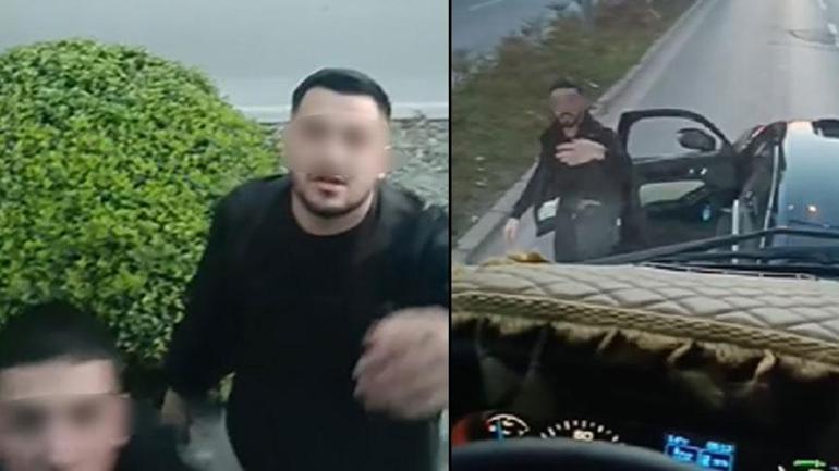 Yol ortasında garip anlar! Şoförlere küfür edip araçları tekmeledi