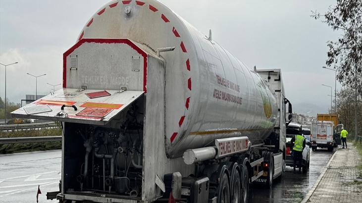 Yol trafiğe kapatıldı! Doğalgaz yüklü tankerdeki kaçak korkuttu
