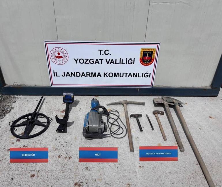 Kazıda kullanılan 1 adet hilti, 1 adet dedektör, 4 adet kazma, 2 adet kürek, 1 adet keser, 1 adet çekiç, 1 adet murç ele geçirildi. Şahıslar takımlarca gözaltına alındı.