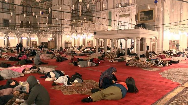 Fatih Camii’ne gelen onlarca kişi, cami içinde ve avlusunda uyudu. Kimi bireylerin banklarda uyuduğu görülürken, birtakım bireylerin ise cami bahçesine çadır kurduğu görüldü. Çok sayıda kişi ise cami içerisinde uyudu. Meskenine gitmek istemeyen birtakım vatandaşlar da geceyi Beyoğlu’ndaki spor salonlarında ve halı alanlarda geçirdi. (DHA)