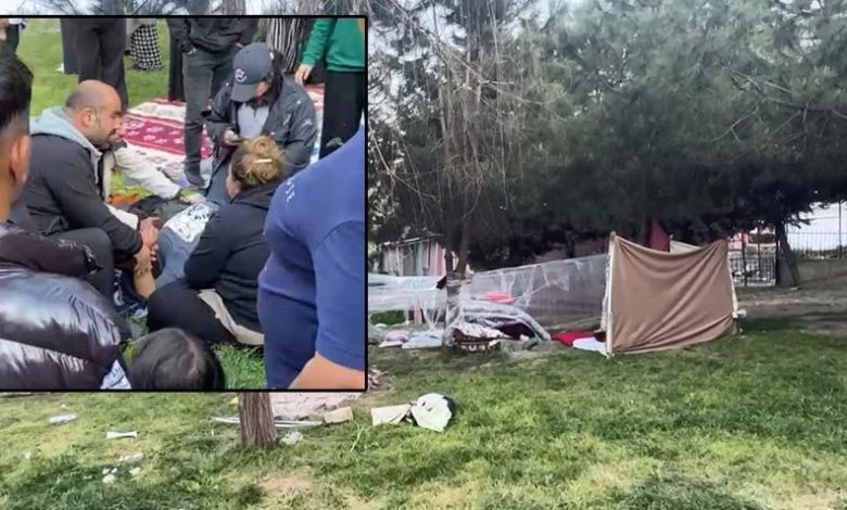 Olay bugün akşam saatlerinde Mehterçeşme Mahallesi Gaziler Parkı’nda meydana geldi. Annesi ve 3 çocuğuyla birlikte yaşayan Pınar Bakırcı, 23 Nisan’daki 6,2 büyüklüğündeki sarsıntının akabinde parka kurdukları çadırda kalmaya başladı. Bakırcı’nın bir müddettir farklı yaşadığı eşi Turgut Bakırcı, konuşmak için parka geldi.