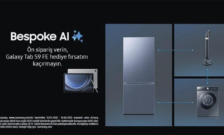 Samsung lansmana özel cazip bir kampanya ile son teknolojiyi daha fazla hayat alanına taşıyor. Kampanya kapsamında Bespoke AI Jet Ultra, seçili model alttan donduruculu Buzdolabı ve Bespoke AI Çamaşır Makinesi eserlerinden birini ön siparişle satın alanlara Galaxy Tab S9 FE tablet armağan ediliyor.